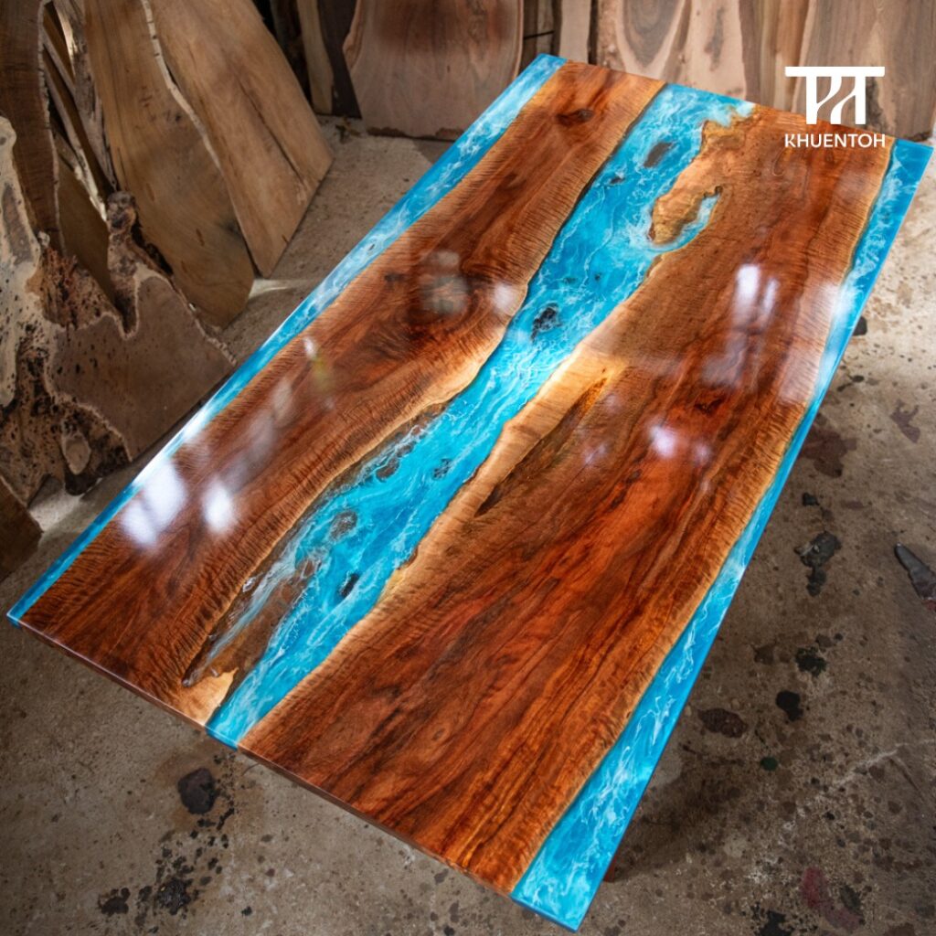 Choose wood slabs, resin pattern style, and color tones.
